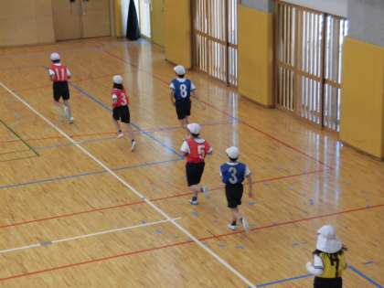2日(金)の3時間目、ひかり学級は体育の時間でした。準備運動のあとは5分間走をしました。1年生から6年生まで自分のペースで5分間走りました。その後、学年に分かれてシュート型ゲーム「パッシュー」の練習とゲームをしました。