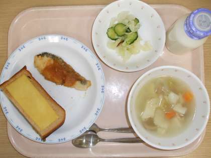 今日の魚は「梨ソース」をかけました。新メニューでしたが、フルーツのほどよい甘味と酸味が揚げた魚によく合い、さっぱりとした味わいでおいしかったです。