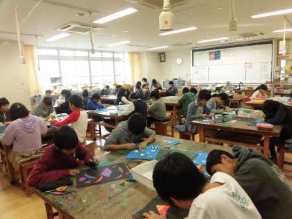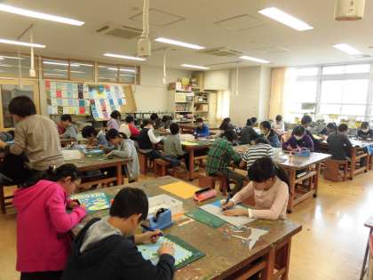 5日(月)の1・2時間目、6年2組は図画工作の時間でした。題材名「引き算の絵」に取り組んでいました。4色の画用紙を重ね、カッターを使いながら様々な模様を切っていきます。1枚目は大たんに、下に行くほど繊細に切っていました。集中して取り組む姿がありました。