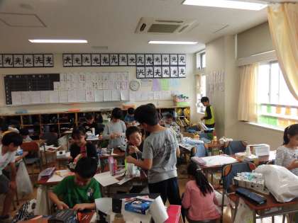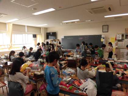 5日(月)の1・2時間目、3年3組は図画工作の時間でした。教室で立体作品の「船」を作っていました。家から持ってきた箱を組み合わせながら船の土台を作りました。友達と情報交換をしながらアイディアをふくらませていました。