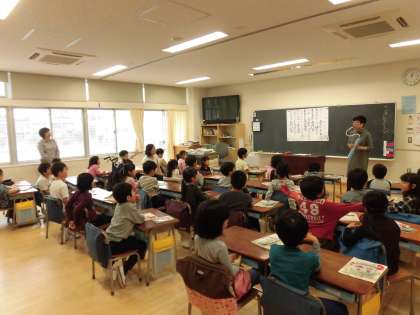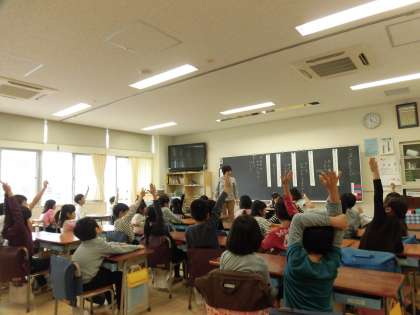 5日(月)の3・4時間目、1年2組の子どもたちは都立光明学園の1年生1名と交流の時間をもちました。3時間目は「好きな○○」について質問をして互いに理解を深めました。4時間目は音楽の学習で校歌を歌ったり、新しい歌「赤い屋根の家」を習ったりしました。「またね。」と言ってお別れをしました。
