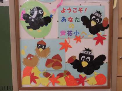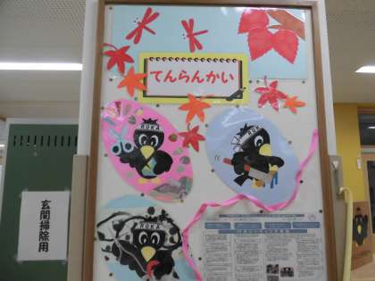 1階昇降口には「ろからす」の掲示板があります。保護者の方が季節に合わせて作成してくださっています。今月は月末に行われる展覧会をイメージして飾ってくださいました。ご来校の際にぜひご覧ください。