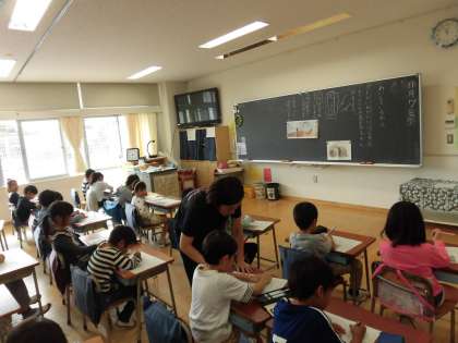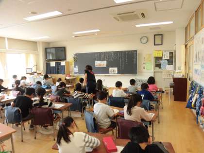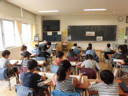 7日(水)の3時間目、1年1組は国語の時間でした。物語「あいしているから」を読み進めていました。今回は、高い丘にきたモール君の気持ちを一人一人が考えてプリントに書きました。