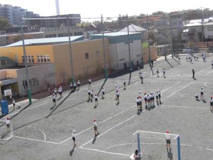 10日(土)の2・3時間目、6年生は学年合同で体育をしました。内容は学級対抗ハンドボール大会です。6つのコートに分かれてゲームを行いました。ルールを守り、声かけをしながらゲームを楽しむ姿がありました。