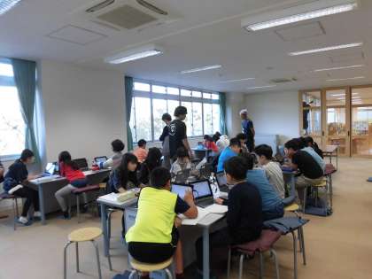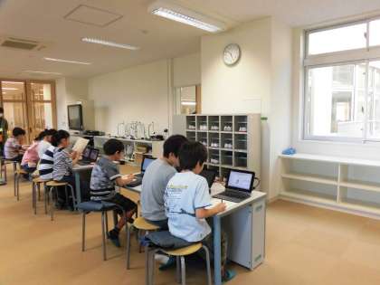 10日(土)の3時間目、4年3組は教科「日本語」の時間でした。パソコン室でタブレットを操作しながら「日本の衣食住」について調べていました。グループごとにすわり、必要な情報を探していました。