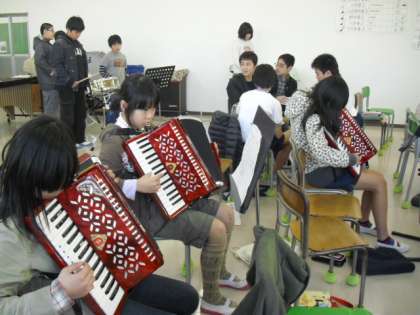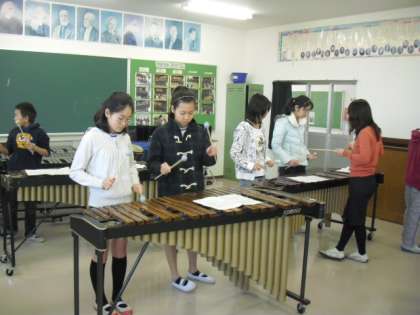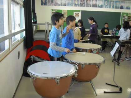 6年生の音楽の授業の様子です。「剣の舞」の合奏に取り組んでいるところです。自分が希望する楽器の練習中です。使用する楽器の種類も多いですが、高学年は楽器の特徴を生かして演奏すること、曲想を生かした表現を工夫し、思いや意図をもって演奏することがポイントになってきます。6年間の学校生活に対する思いを込めて。