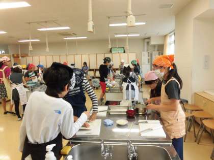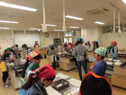13日(火)の3・4時間目、5年2組は家庭科の時間でした。調理実習で「おみそ汁」を作りました。具は大根、油あげ、ねぎで、だしは煮干しでとりました。作りながら片付けもしていました。