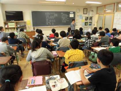13日(火)の3・4時間目、5年4組は理科の時間でした。単元名「流れる水のはたらき」について取り組んでいました。3時間目は校庭の砂場で水の流れを実験しました。4時間目に教室にもどり、実験結果をまとめました。