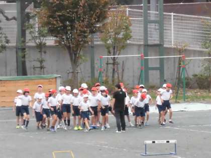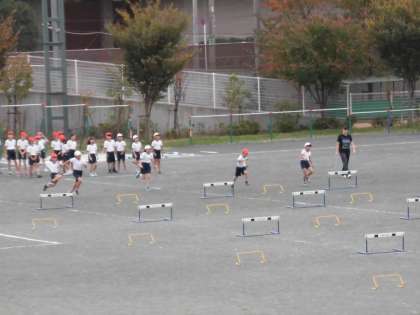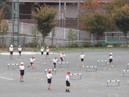 13日(火)の6時間目、4年2組は体育の時間でした。校庭でハードル走に取り組んでいました。ハードルの列とミニハードルの列を用意し、順番にとびこして行きました。全力で走る友達を応援する子どもたちの姿がありました。