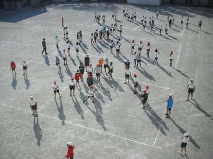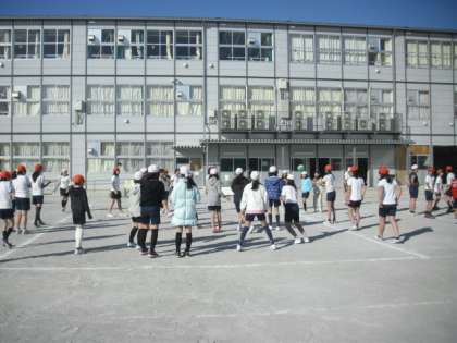 6年生の3クラス合同の体育の授業の様子です。小学校生活も残すところ約50日の6年生。学年として取り組むことで所属感・連帯感をより一層高めます。風は冷たかったですが、暖かい日差しのもと、ボールゲームで汗を流しました。