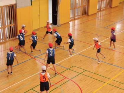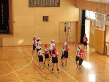 16日(金)の5時間目、6年1組は体育の時間でした。体育館で「バスケットボール」に取り組んでいました。6チームを作り、チームごとにパスやシュート練習をしてから、ゲームに臨んでいました。シュートが入ったときは思わずガッツポーズが出ていました。