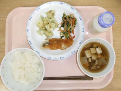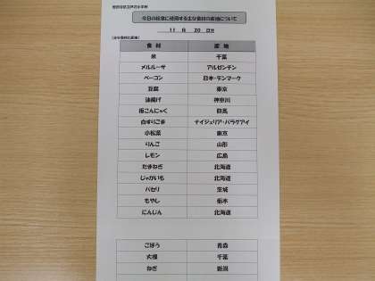 「バーベキューソース」は、おろしたりんごやたまねぎを使い、給食室で一から作っています。少し甘めのソースは子どもたちからも人気です。
