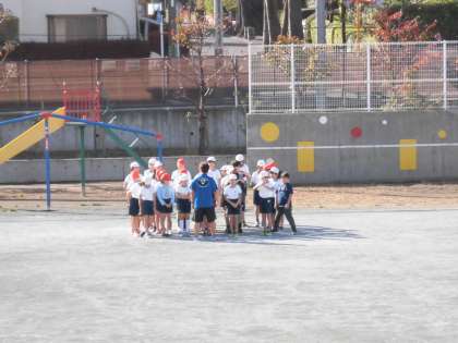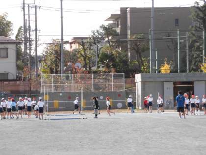 20日(火)の2時間目、5年3組は体育の時間でした。校庭で走り高とびに取り組んでいました。準備運動のあと、4カ所に分かれて練習をしました。バーを跳び越せた友達には「やったね。」「すごい!」という言葉をかけていました。