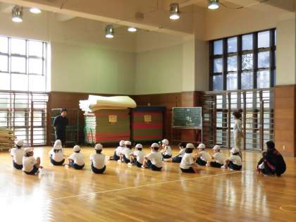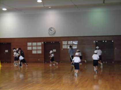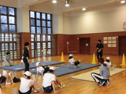 20日(火)の2時間目、ひかり学級の子どもたちは体育の時間でした。毎週中学校の格技室をお借りして取り組んでいます。5分間走のあと、マット運動をしました。最初は、クマやクモ、アザラシなどの動物歩きに挑戦していました。