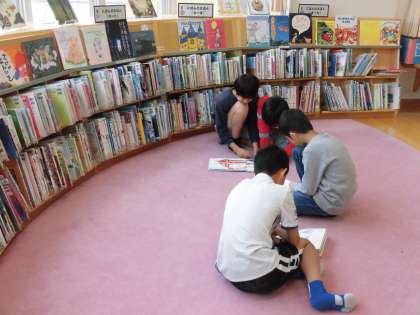 22日(木)の3時間目、5年3組は図書の時間でした。思い思いの場所で静かに本を読んでいました。