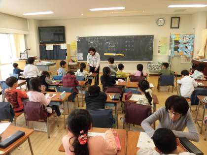 22日(木)の3時間目、1年1組は算数の時間でした。ひき算の学習をしていました。13−9や14−6などの繰り下がりの計算です。引かれる数を10といくつに分け、10から引く数を引いて残りの数を足すという方法を何回も行いました。プリント問題にも挑戦し、終わったときにはうれしそうにしていました。