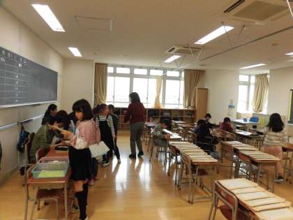26日(月)の6時間目、2年生と3年生を対象に寺子屋クラブがありました。ランドセルを持った子どもたちが算数教室に集まりました。自分のペースに合わせて問題に取り組んでいました。