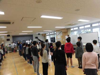 27日(火)の朝、合唱団の朝練習がありました。1週間ぶりの練習です。歌詞を思い出したり、曲の切り替えを確認したりしていました。合唱交歓会に向けて、8日(土)に校内発表会を行う予定です。