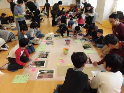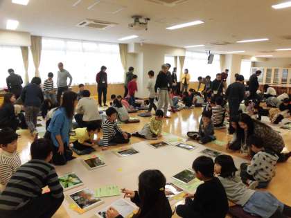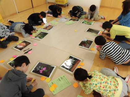 27日(火)の午前中、4年生は2クラス2時間ずつ、文学館ワークショップの最終回に参加しました。22日(木)に芦花公園で撮影した一人ひとりの写真をグループ内で見合いました。そのときに付箋紙に感想を書いていきました。友達の写真のよいところを見付けて具体的に書く姿がありました。写真は、1・2時間目の1・2組の様子です。