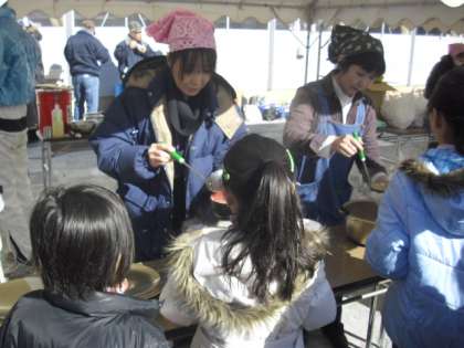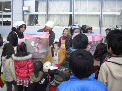 食べ物のコーナーにはたくさんの人の列ができました。きな粉・あんこ・いそべ巻き等のおもち、体が温まる豚汁、子どもたちが大好きなわたあめ、ポップコーン。子どもたちも大人もおいしくいただきました。