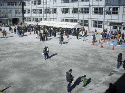 輪投げゲーム、粕谷児童館からはローラーコースターを出店してもらい、子どもたちはスピードを楽しんでいました。天候にも恵まれ、校庭でのゲームも大成功でした。