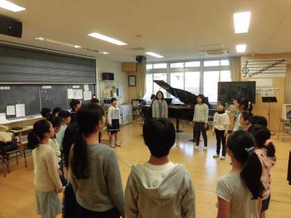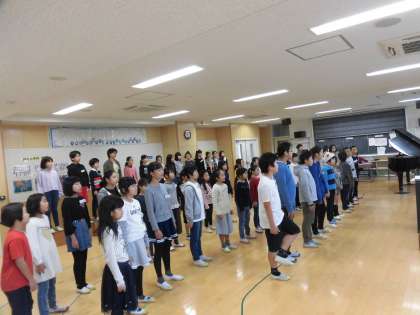 28日(水)の午前7時30分から合唱団の朝練習がありました。少しずつ寒くなっていますが、子どもたちは元気に登校しています。合唱曲をイメージしやすくするために季節に応じた画像をプリントアウトして掲示してありました。「ウツギ」の花、「ホトトギス」を初めて見た子どもたちは、なるほどと歌詞の意味をより深く理解したようです。