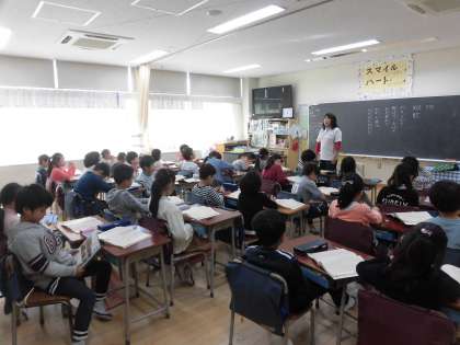 29日(木)の3時間目、2年3組は教科「日本語」の時間でした。短歌を読んでいました。今回は防人の歌でした。担任の先生から短歌の詠まれた背景を聞き、その後、プリントに自分の考えを書きました。