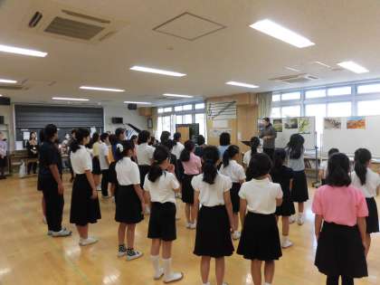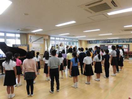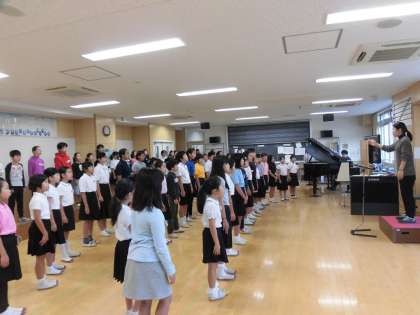 12月1日(土)は展覧会のため1日授業日でした。合唱団の朝練習が午前7時30分から始まりました。今回は、合唱交歓会に参加する子どもたちが舞台衣装を身に付けて参加しました。2週間後に迫った初舞台に向けて、言葉の意味やアクセントの強弱の確認をしながら練習をしました。
