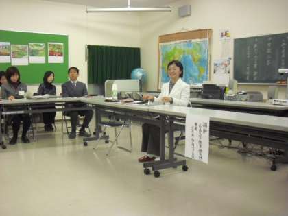 小中合同研究会の様子です。今回は世田谷区の施策「人格の完成を目指して」の創設に携わった広島大学教育学部の青木多寿子先生を講師にお招きし、お話を伺いました。芦花小中学校が9年間を通して「人格の完成を目指して」に取り組むことに大変興味を示されていました。私たちも改めて、この取り組みの価値について理解を深めました。