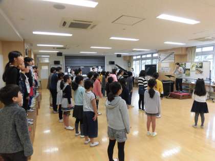4日(火)、合唱団の朝練習がありました。合唱交歓会で披露する歌の練習をしています。四季を歌で表現していますが、少しずつ歌に表情がついてきました。間奏のときに指揮者をしっかり見ることもできるようになってきています。
