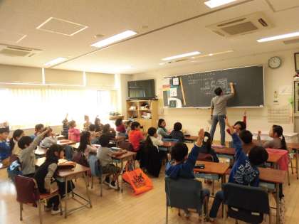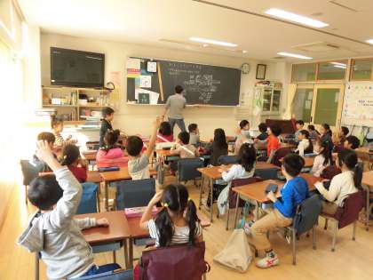 4日(火)の3時間目、1年5組は生活科の時間でした。「おしごとだいさくせん」と題して、家でお父さんやお母さんがどんなことをしているのかをみんなで考えました。黒板に大きくマップを作り、どんどん枝葉をのばしていきました。最後に数えたら30もの仕事があり、子どもたちは驚いていました。