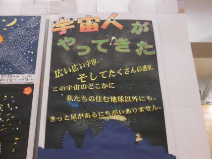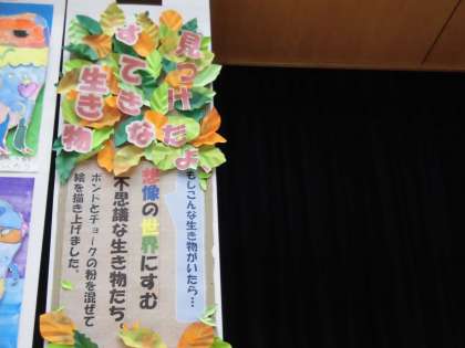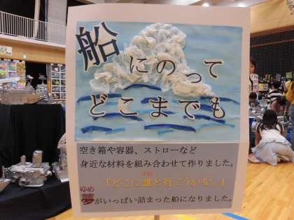 3年生は平面作品「宇宙人がやってきた」「見つけたよ、すてきな生き物」のどちらかを1点、立体作品「船にのってどこまでも」1点を出品しました。152隻の船が並ぶ姿はまさに壮観でした。