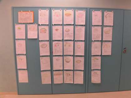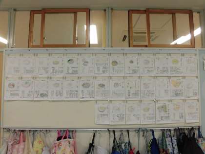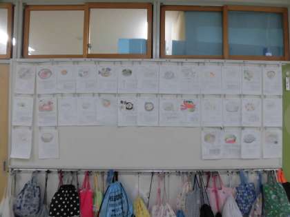 6年生の廊下には、国語の時間に調べた「なべ料理」を掲示しています。説明文「なべの国 日本」を読み終えてから、各自で日本の鍋料理を調べました。すき焼き、きりたんぽ鍋、水炊き、牡蠣鍋などたくさんの鍋料理が登場しています。