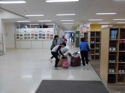 7日(金)の午前中、トラックが1台学校に到着しました。10月に集めさせていただいたご家庭の服の回収です。重さにして349kgになりました。前日の6日(木)にオリ・パラ委員会の子どもたちが1階ピロティまで運びました。今回の取り組みがパラスポーツの振興に役立てられます。ご協力をいただきました皆様に感謝申し上げます。