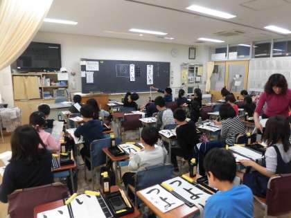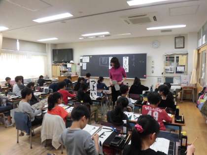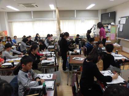 7日(金)の5・6時間目、3年2組は習字の時間でした。今回は、書き初めの練習をしていました。初めて「つよい力」と書きました。書き初め用紙が半紙とは長さも幅も違うので、文字の大きさに気を付けながら練習をしていました。