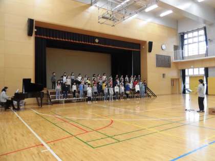 8日(土)は授業日でした。午前7時30分から合唱団の朝練習が始まりました。中休みにミニコンサートを行うので音楽室で少し練習をしてから体育館に移動しました。3列に並んで入場するところから始めました。部分練習をしてから通して歌いました。本番を楽しみにして朝練習をおわりました。