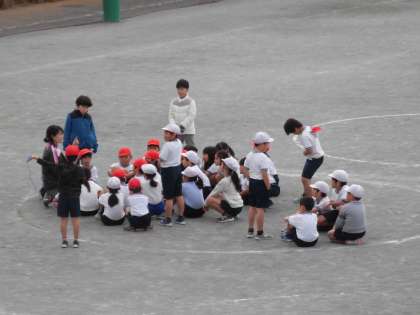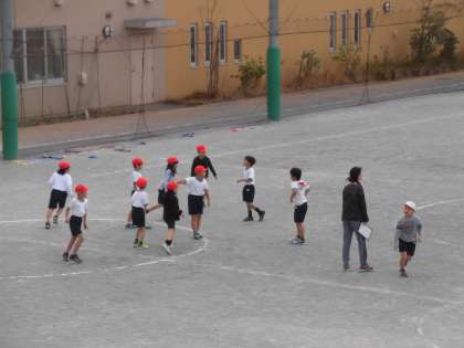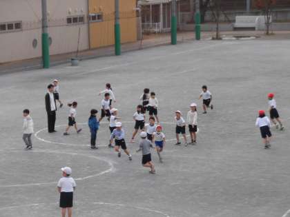 10日(月)の2時間目、2年5組は体育の時間でした。準備運動をしてからおに遊びをしました。校庭にいくつもの円を描きその中に逃げ込む方式でした。今年一番の寒さと言われる中でも元気に走り回る姿がありました。