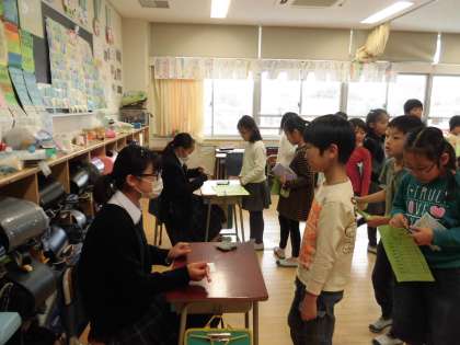 10日(月)の3時間目、2年生は2回目の「かけ算九九交流検定」を行いました。今回も芦花中学校の1年生にお世話になります。10日は1年C組の皆さんが、5グループに分かれて2年生の各教室に来てくださいました。今回の交流検定でかけ算九九がすべて合格できるように2年生も張り切っています。