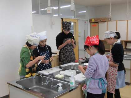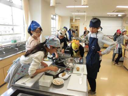10日(月)の3・4時間目、6年3組は家庭科の時間でした。「ベーコンポテトチーズ焼き」の調理実習をしていました。一人1個じゃがいもを洗い、包丁で皮むきをしました。包丁の置き方も覚え、安全に調理をすることができました。