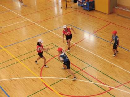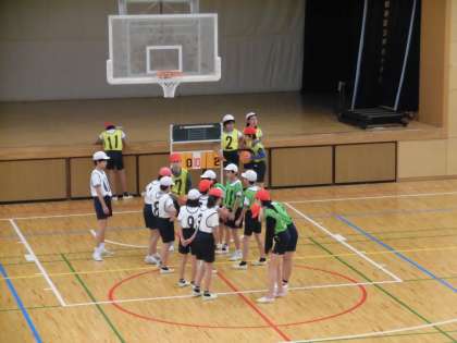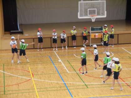 11日(火)の4時間目、6年2組は体育の時間でした。体育館で「バスケットボール」に取り組んでいました。チームごとにパスやシュート練習をしてから、ゲームに臨みました。6チームあるので、班長同士でゲーム順を決めていました。前半6分でメンバーを交代して後半6分のゲームに臨んでいました。