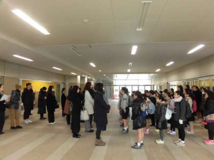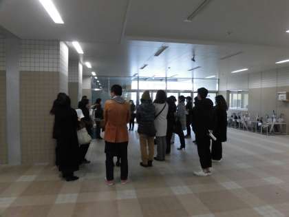 16日(日)、世田谷区民会館において「第28回世田谷区合唱交歓会」が開催されました。芦花小学校合唱団は、午後の部に出演しました。子どもたちは、午前11時40分にピロティに集合しました。音楽の先生は交歓会運営のため、合唱団世話人の保護者の皆様を中心に子どもたちの引率をお願いしました。子どもたちの出席確認、服装や髪型のチェック、引率してくださる世話人以外の保護者の皆様との打ち合わせなど、ご活躍いただきました。写真は、ピロティでの様子です。