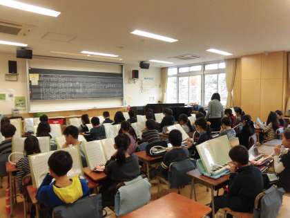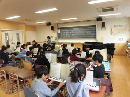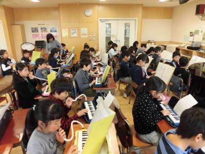 17日(月)の3時間目、3年3組は音楽の時間でした。鍵盤ハーモニカで「ミッキーマーチ」の練習をしていました。一人ひとり楽譜を見ながら、弾むようなリズムを刻んでいました。