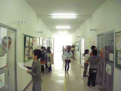 3年生の社会科の授業の様子です。「安全なくらし」の学習の一環で校舎内の消防に関する設備を探しているところです。職員室では「煙探知機がある」「非常サイレンの機械がある」と関連するものを見つけてはメモしていました。来月には消防署を見学する予定です。