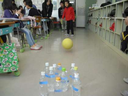 上からボーリング、射的ゲーム、コイン落としゲームの様子です。2年生は一つお兄さん、お姉さんだけあって1年生にやさしく教えてあげていました。参観に来た保護者の方や小さなお子さんも参加していました。