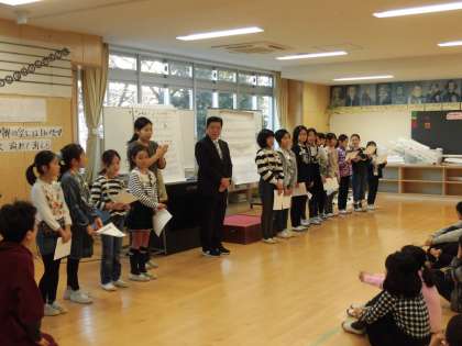 19日(水)、2学期最後の合唱団の朝練習がありました。最初に校長先生から13人に対して「皆勤賞」が手渡されました。皆勤賞は、無欠席・無遅刻の人に対して贈られました。校長先生からは、「皆さん自身のがんばりも素晴らしいけれど、皆さんを支えてくれたおうちの方に感謝の気持ちを忘れないでください。」というお話がありました。