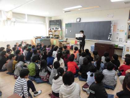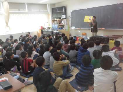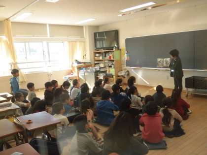 19日(水)、2年生はお話会に参加しました。今回も地域の読み聞かせグループ「たんぽぽ」の皆様にお越しいただきました。1時間目は4組と5組、2時間目は1組、3時間目は2組と3組に分かれてお話を聞きました。静かに聞きながらもおもしろいところでは笑いが出て、楽しんでいることが伝わりました。