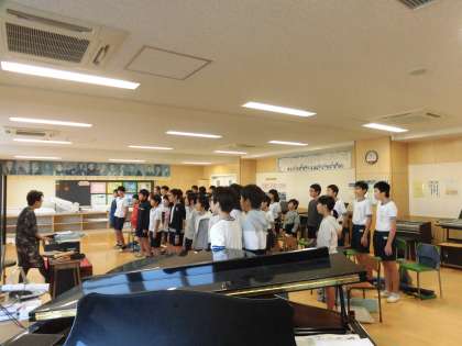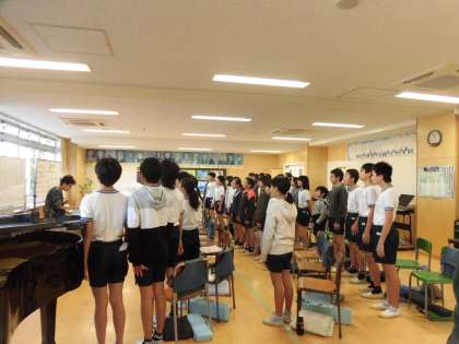 21日(金)の3時間目、6年4組は音楽の時間でした。「星の世界」の歌を練習していました。クラスのみんなでしっかり歌うことができており、声の低い男子ものびのびと歌う姿がありました。その後、「ルパン三世」のテーマ曲を階名読みで2回歌い、鍵盤ハーモニカで練習しました。