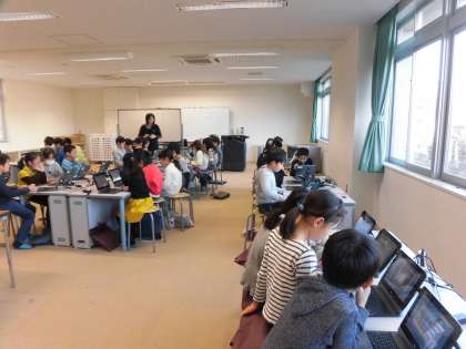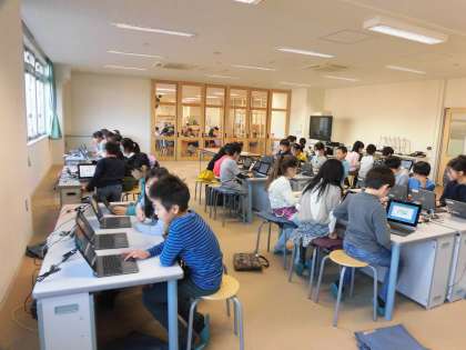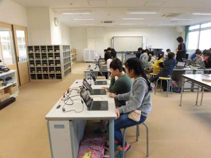21日(金)の3時間目、3年1組はパソコン室にいました。ローマ字の入力練習を行うためです。一人1台あるタブレットを起動するところからスタートしました。子どもたちはためらうことなくどんどん操作をしていました。忍者の登場するローマ字練習を楽しんでいました。