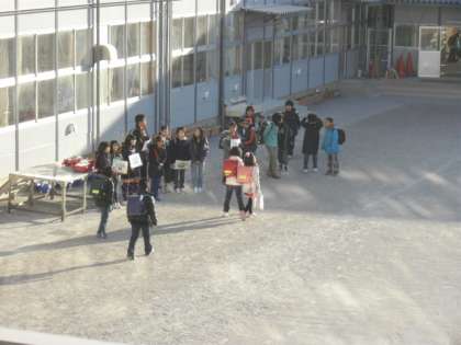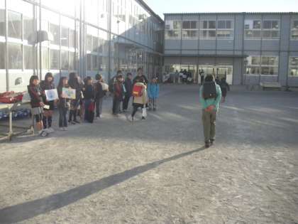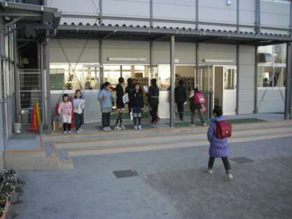 今朝のあいさつ運動の様子です。今日は土曜日なので中学校はお休みです。部活動の一部の生徒は登校しています。それでも小学生は、元気よくあいさつを交わし合います。今日もさわやかな一日のスタートです。