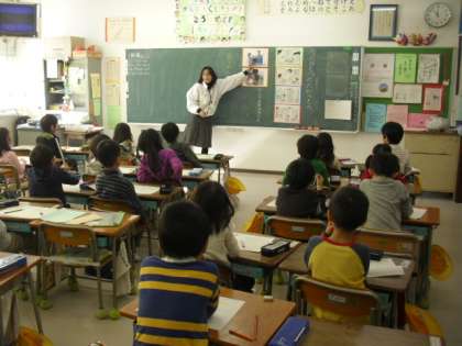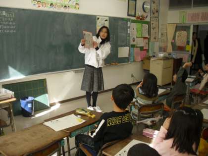 1年生の道徳の授業の様子です、このクラスは「たからものはかがみのなかに」の資料を使い、生命尊重について考えました。主人公の祖父は自分の宝物はかがみの中にいると言い、主人公の男の子は鏡をのぞきに行くと自分が写っている話です。